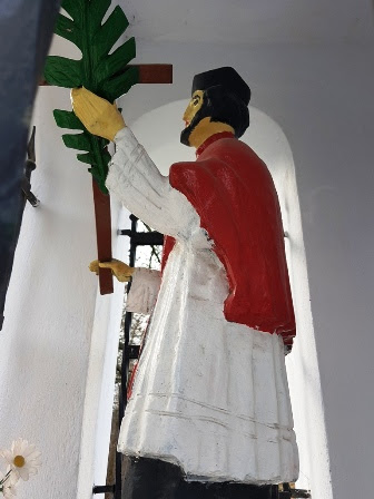Przy ulicy Obozowej czekała na mnie kolejna niespodzianka. Rzeźba świętego Jana Nepomucena została pomalowana.